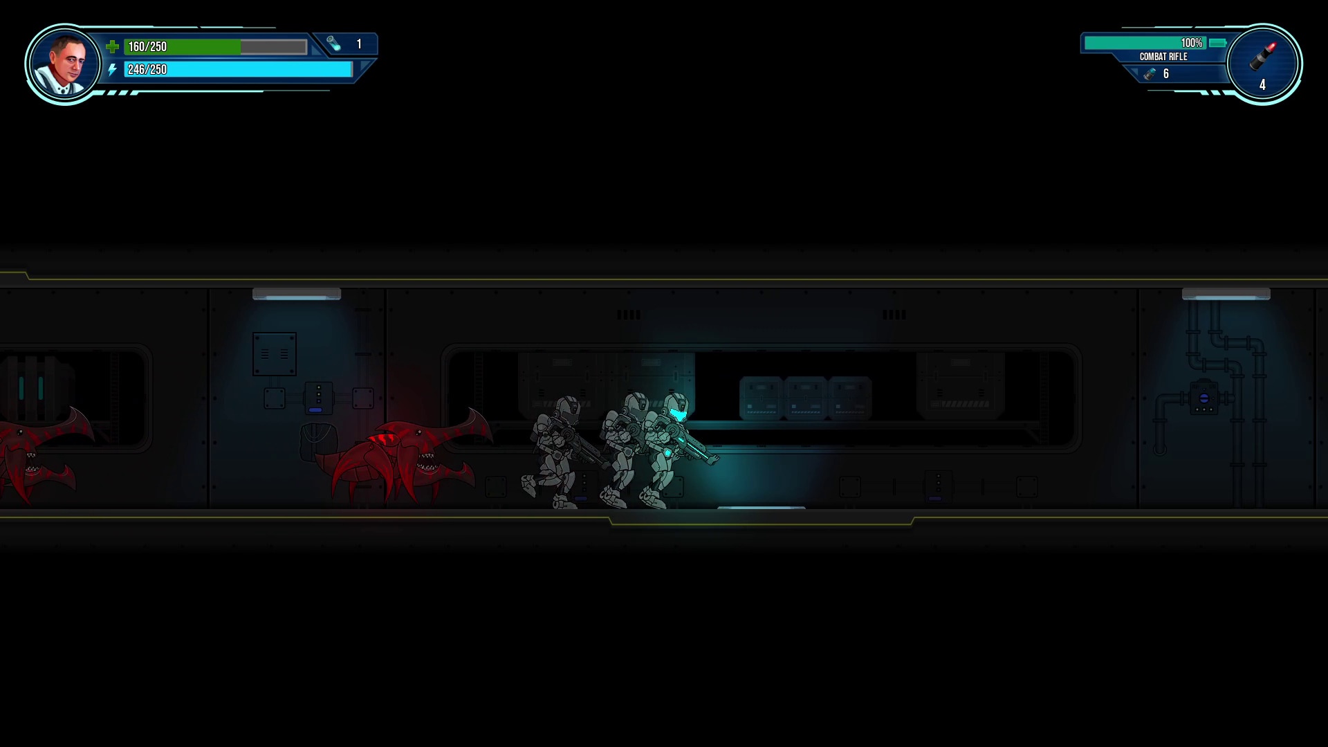 Omega Warp is a 2D single-player action-adventure that takes place aboard ISE Horizon Prime interstellar freighter, orbiting the planet Tau Verge in the constellation HH Andromedae, serving as a base of operations for building an outpost. Play as Lana Winfort or Stean Redfire belonging to the repair team sent to investigate the interstellar freighter's loss of communication with the base of operations on Earth that occurred a year earlier.